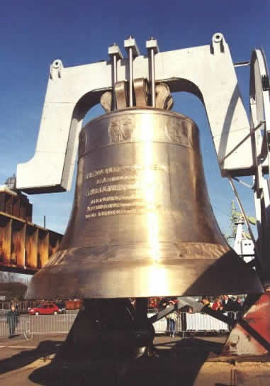 natürlich nicht mehr im Sekundenrythmus bewegt werden. Diese Glocke läutet mit 12 Schlägen pro Minute, und jeden einzelnen Schlag hört man 40 Km im Umkreis. Zur Herstellung der Gussform waren 4000 Ziegel, 150 Tonnen