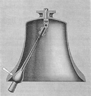 Keulenklöppel, der an einer einfachen Lasche in der Glocke aufgehangen war. Man hatte Angst, ein fliegender Klöppel würde die dünne Glockenwand zerstören. Zudem waren Fallklöppel auch billiger und man war froh,